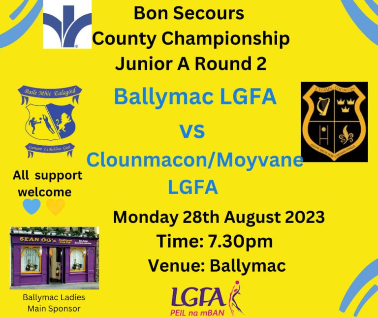 Senior Football League Division 1 Round 8 Ballymacelligott: 3-13 Milltown/Castlemaine 3-10 (Sunday 4th June in Ballymac) Ballymac sits...